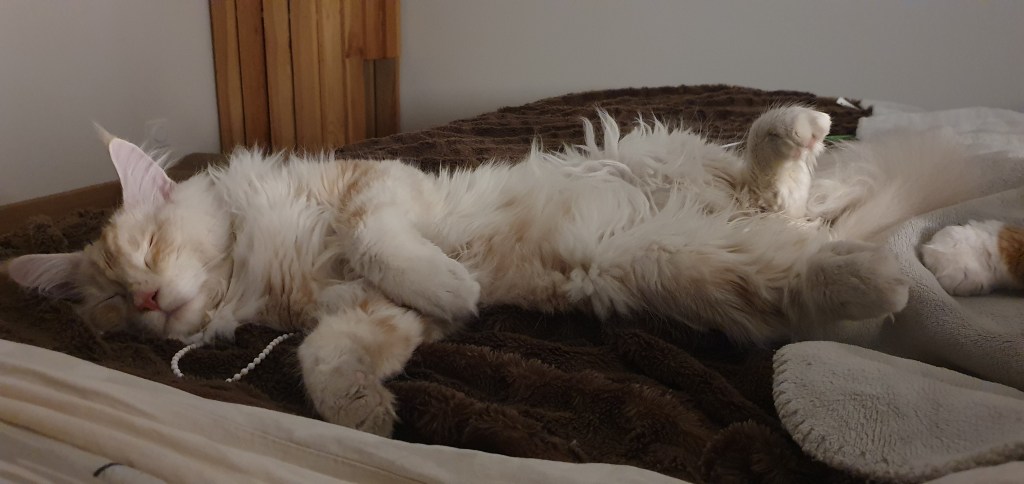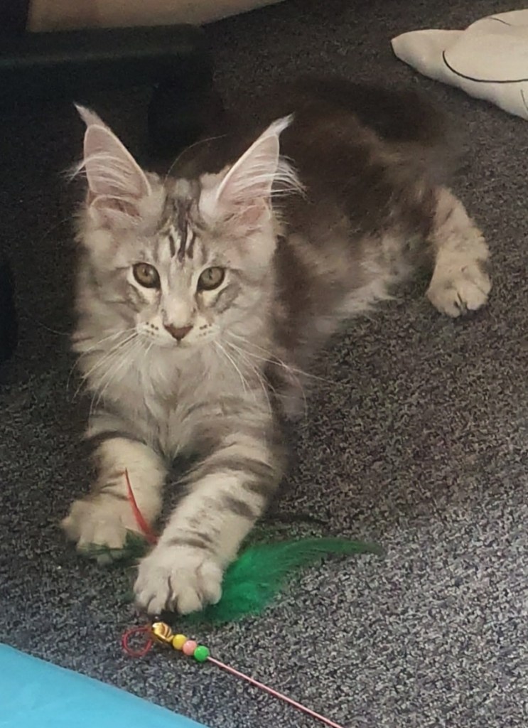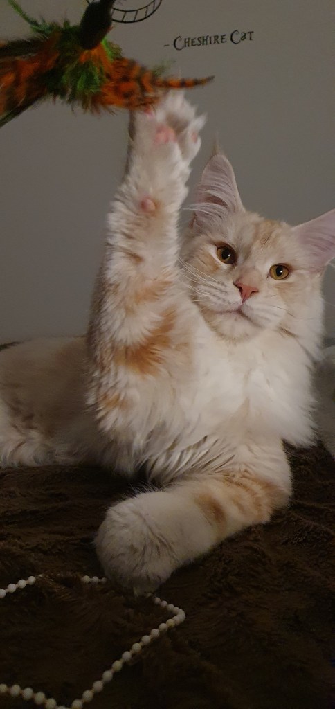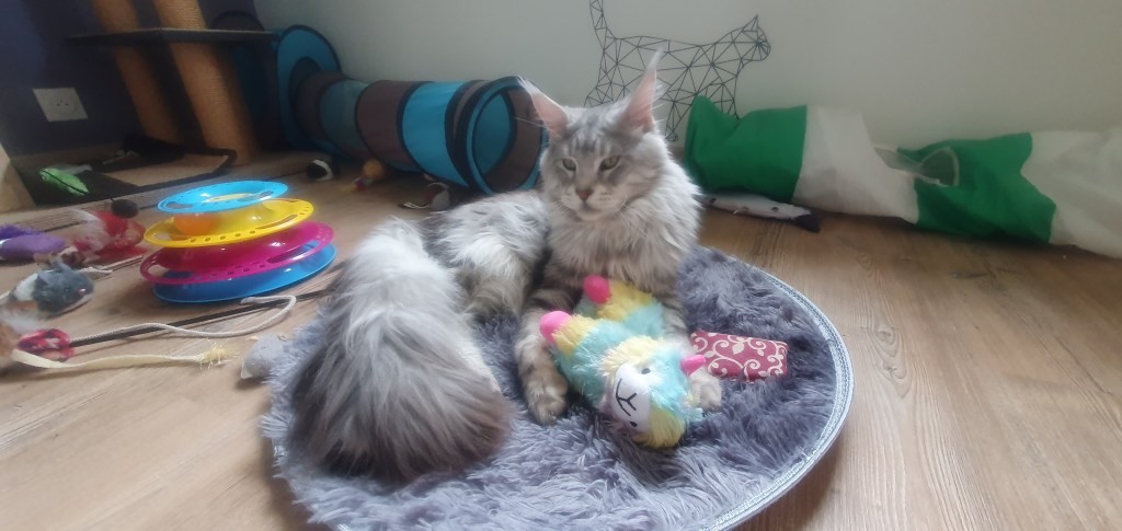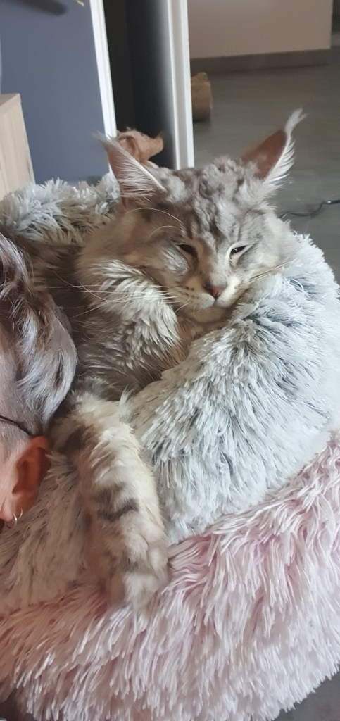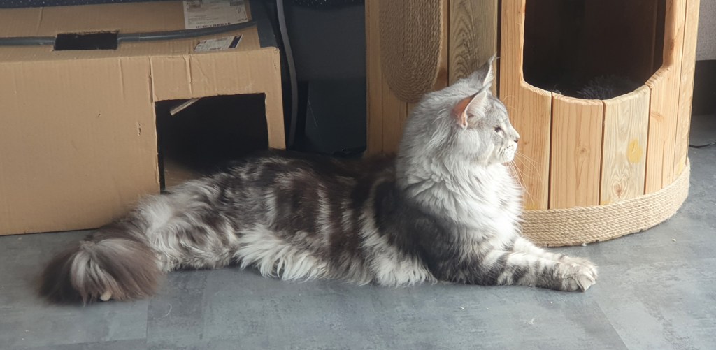 Loki n’était pas fan des expositions, donc après son titre de champion, il est resté à la maison. Ce joli cœur nous a fait une magnifique portée 2024 avec Saphyr. Nous attendons 2026 pour les prochaines saillies. Hâte de voir cela, d’autant que nous avons rentré Zelda du Cœur de Lion, une femelle aux couleurs chatoyantes.